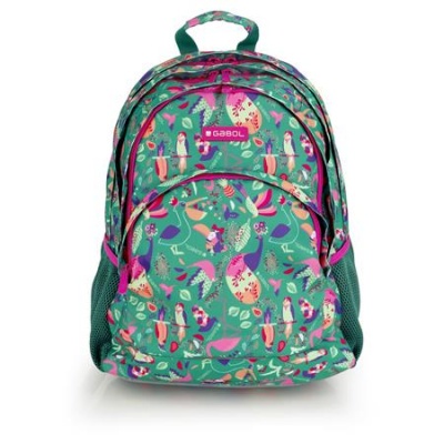 Hátizsák, iskolatáska, cipzáras, GABOL "Vida", zöld, trópusi mintás